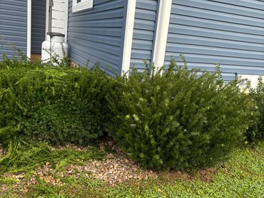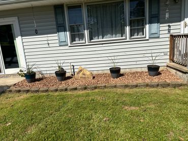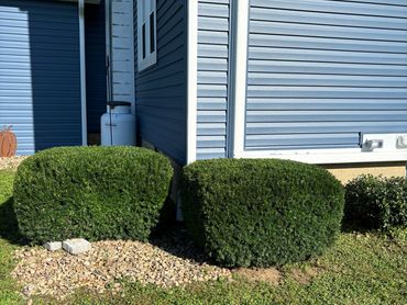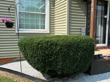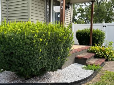 Customer was looking for something easy to maintain and to step up the curb appeal of there property, a lot of trimming and clean-up was done then added in a couple Box Woods and finished the job with some 2B River Rock.